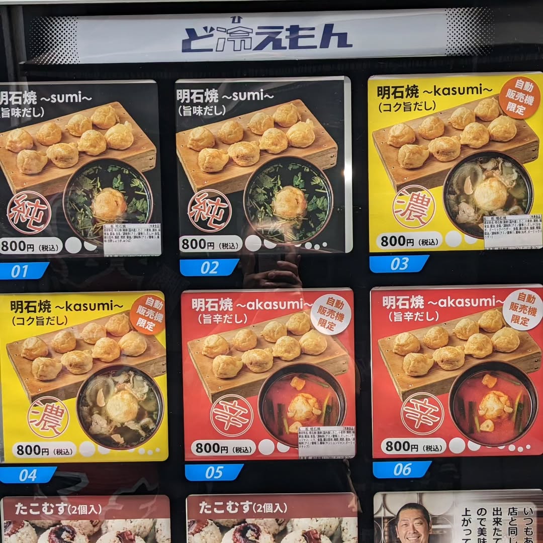 「冷凍たこつぼ自販機」店舗前に移設されました。店舗では、鰹と昆布のお出汁のみの提供ですが、なんと!自販機には鰹と昆布以外にも大阪名物油かす味、コチュジャン味が選べます。 #大阪 #大阪グルメ #大阪観光 #大阪みやげ #阿倍野 #あべのハルカス #明石焼き #明石焼 #たこ焼き #お出汁 #油かす #コチュジャン #冷凍 #冷凍自販機